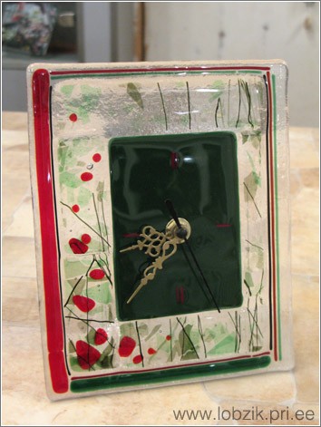Интересный эффект можно получить,если после того ,как стекло оплавится,выключить печь и открыть дверцу,Печь начнёт быстро остывать.Можно через час вынуть из неё плитку.известо так же ,что стекло имеет плохую теплопроводность.При быстром охлаждении верхние слои стекла остывают быстрее чем внутренние ,сжимаясь они давят на внутренние слои сильно,которые сохраняют долго высокую температуру.отсюда следует что верхний остывший слой покрывается сетью мельчайших трещин которые затем проникают в глубь стекла.Между прочим это интересный приём декорирования стекла.