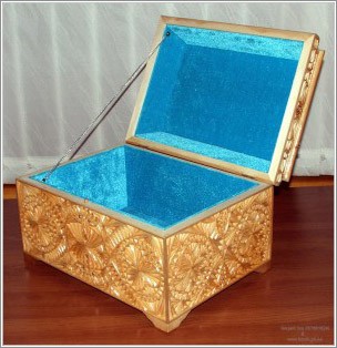 Приветствую! в переди предстоит дипломная работа, учусь на столяра краснодеревщика. Появилось желание зделать такой ларец (очень резьба понравилась, исполнение и сам образ) со всякими программами в компютере я на Вы, а так от руки рисовать чертёж на резьбу на листе не в силах я.. Вот и прошу, если может быть остались распечатки 1:1 скиньте мне на емаил, буду ооочень благодарен! =)