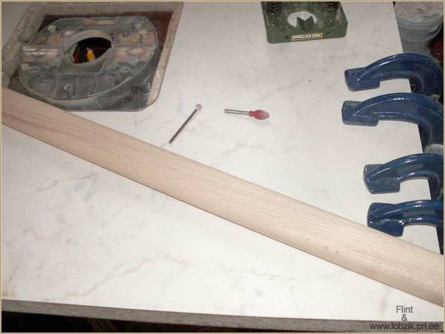 Когда у меня были готовы деревянные стержни, то я начал думать как на них нарезать резьбу. Попыток было много. Сначала я пытался нарезать резьбу плашкой по металлу, но резьба слишком мелкая и древесину крошило и трескало. Затем я пытался сделать резьбу бормашинкой Skil, результат был лучше, но совсем не тот который я хотел получить. И когда я совсем отчаялся нарезать резьбу мне попалась на глаза струбцина Matrix. Там на зажиме нарезана инструментальная резьба.