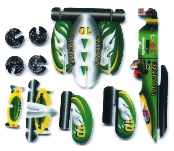 Маленькое дополнение. На фотке видно, что у синей машины нет антикрыла. Потерялось, к сожалению. Но на чертеж я дорисовал его, точно такое, как и у зеленой модели. Не удивляйтесь и будьт внимательны.